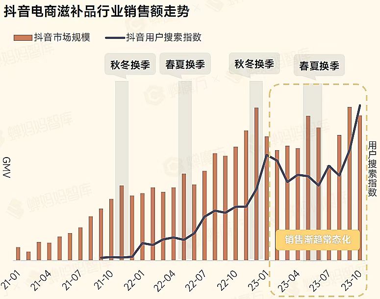 俗話說(shuō),“秋冬進(jìn)補(bǔ)來(lái)年打虎”,秋冬正是滋養(yǎng)進(jìn)補(bǔ)的黃金時(shí)節(jié)。從市場(chǎng)數(shù)據(jù)可看出,秋冬換季月份,滋補(bǔ)需求顯著增長(zhǎng),消費(fèi)者防患于未然意識(shí)強(qiáng)烈,養(yǎng)顏?zhàn)萄a(bǔ)、安睡安神、增強(qiáng)免疫力等多種健康需求顯著提升,養(yǎng)肝護(hù)肝也逐漸受到重視,成為新興品類(lèi),市場(chǎng)規(guī)模持續(xù)擴(kuò)大。