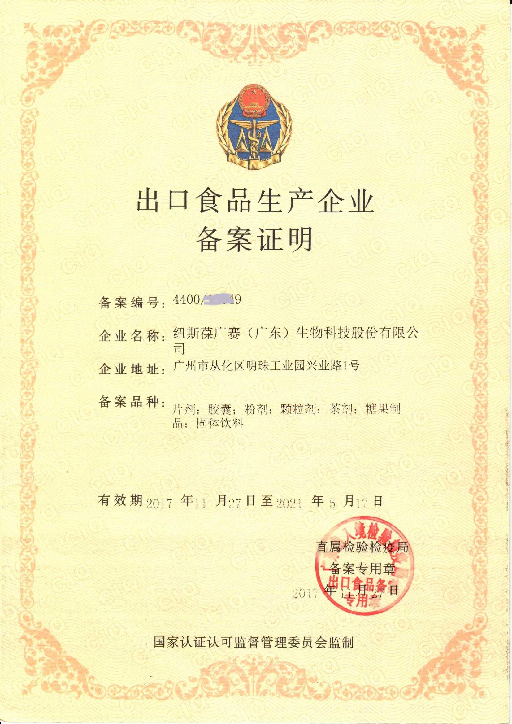 出口食品生產(chǎn)企業(yè)