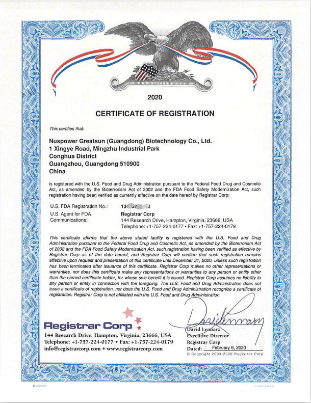 美國FDA注冊證書